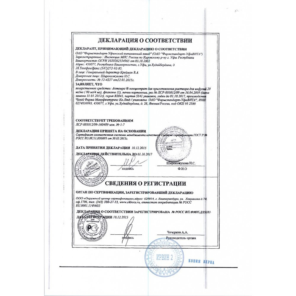 Инструкция Актемра