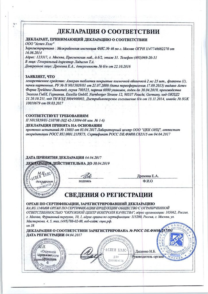 | Алкеран таблетки 2мг №25 | Германия | 4 900 руб. | 25 таблеток по 2мг |
