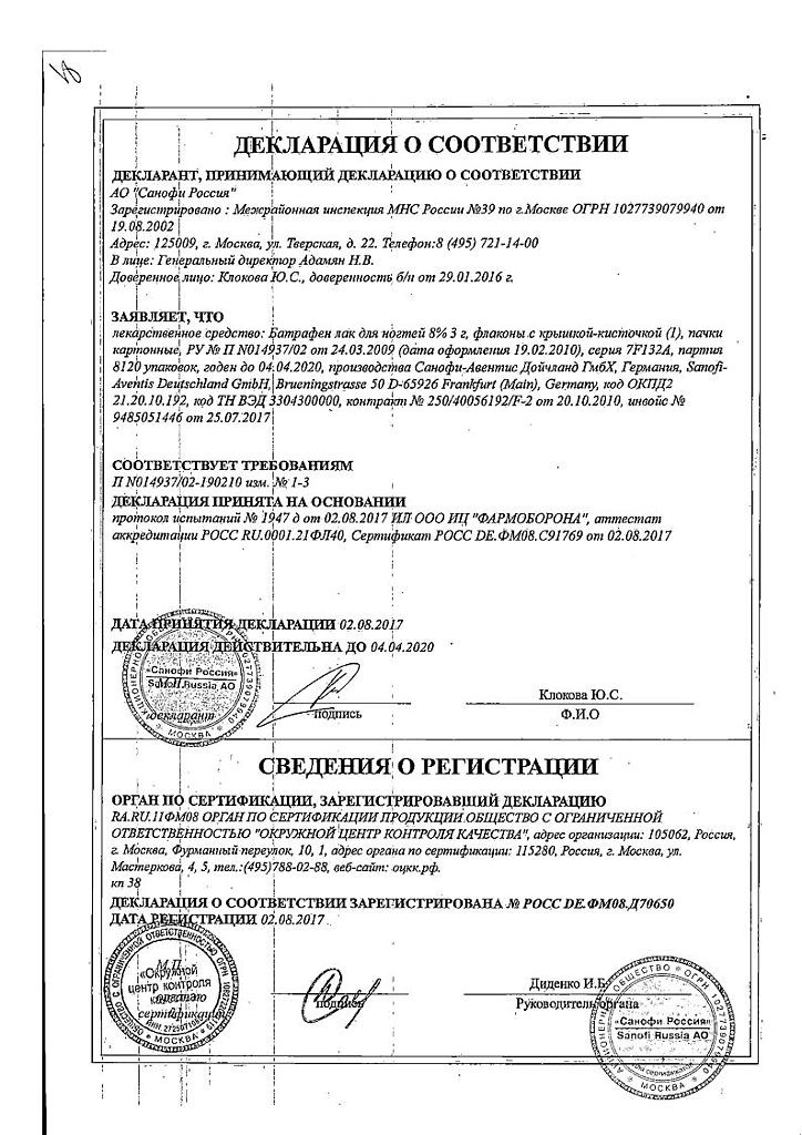 Лечебный лак для ногтей Batrafen предназначен только для местного нанесения на ногти.