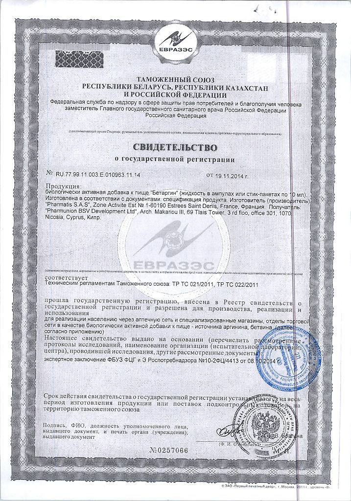 - Биоактивные вещества: аргинина цитрат, бетаин.