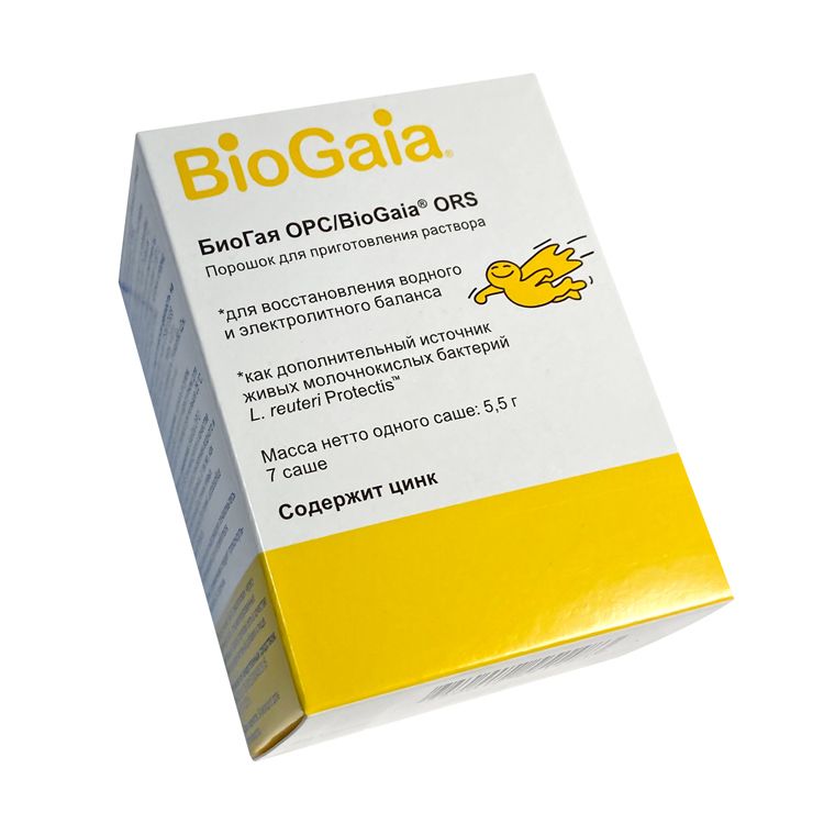 БиоГая ОРС — это комбинированный препарат, предназначенный для восстановления водно-электролитного баланса, а также для поддержания нормальной работы желудочно-кишечного тракта благодаря содержанию пробиотиков. В составе препарата присутствуют живые молочнокислые бактерии Lactobacillus reuteri Protectis, которые помогают восстанавливать микрофлору кишечника, и цинк, который способствует укреплению иммунной системы и уменьшает тяжесть диареи. Препарат рекомендуется для применения у взрослых и детей в комплексной терапии различных заболеваний, сопровождающихся обезвоживанием и дисбалансом электролитов.