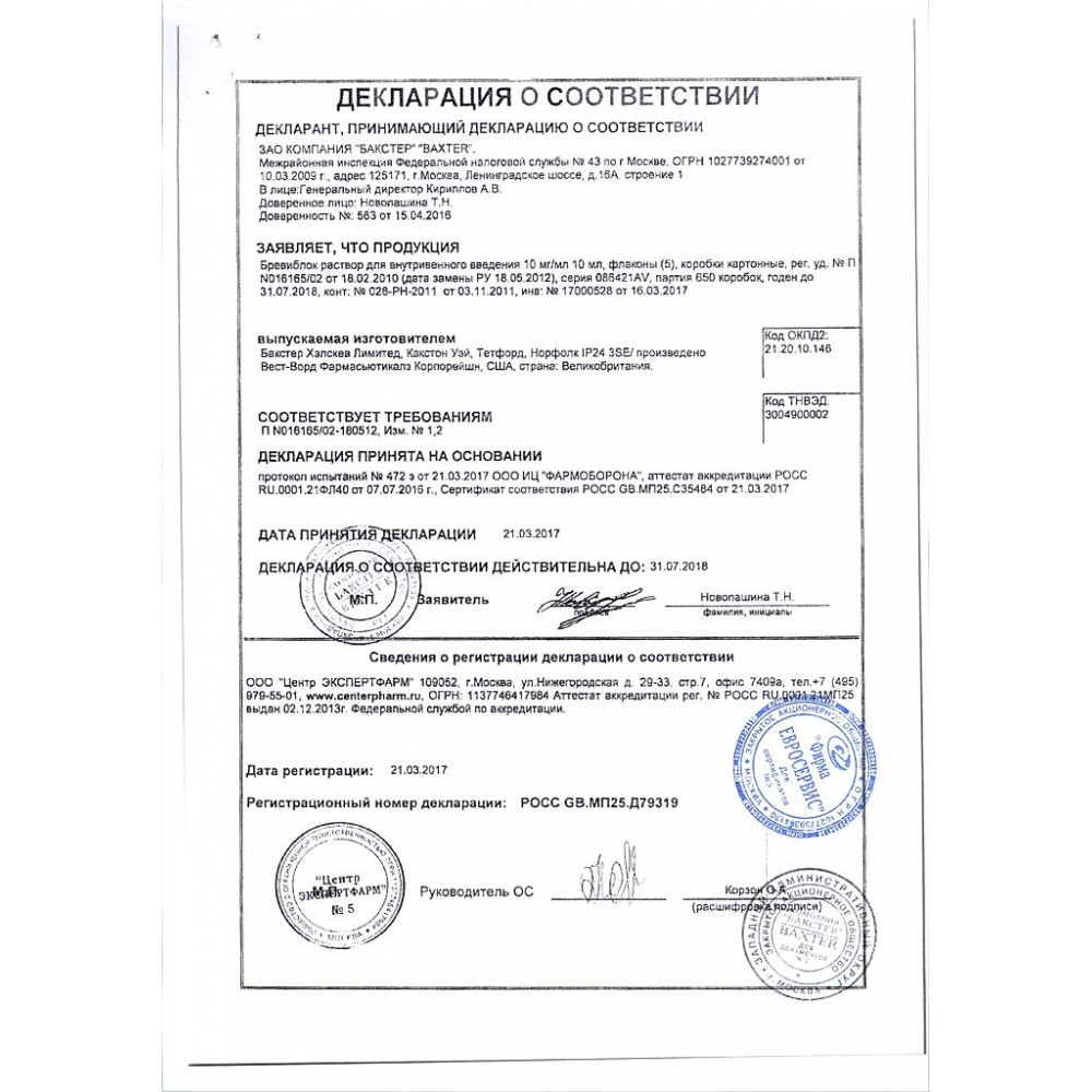 Прежде чем купить Бревиблок 10мг/мл в ближайшей аптеке, нужно обязательно проконсультироваться с врачом. Самолечение опасно для Вашего здоровья.