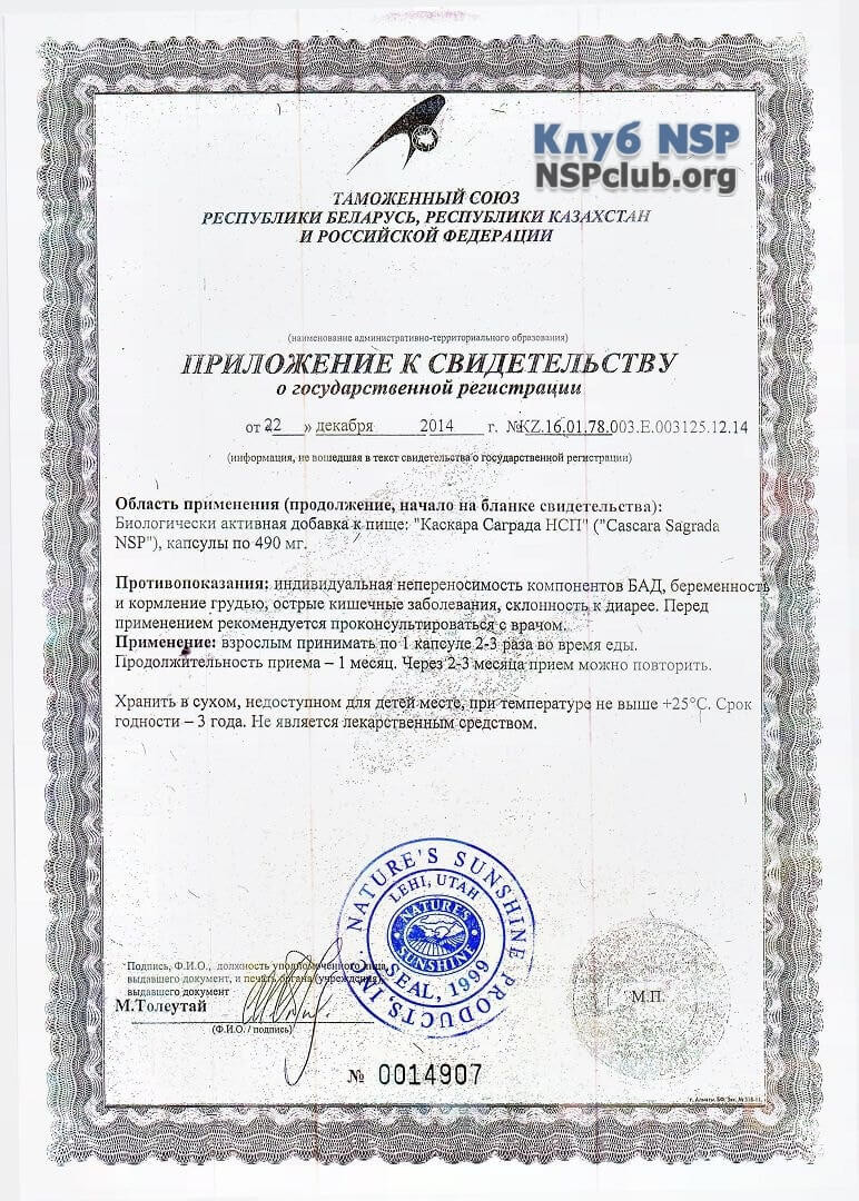 - Экстракт коры Каскара Саграда (Rhamnus Purshiana) – ключевое активное вещество добавки.