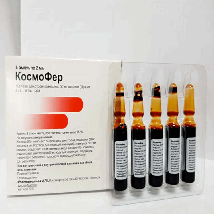 Железодефицитная анемия зачастую вызывает сложности в лечении из-за непереносимости некоторых форм фармакологических препаратов. Чтобы быстро восполнить недостаток железа, используется Космофер 50 мг/мл 2 мл ампулы №5.