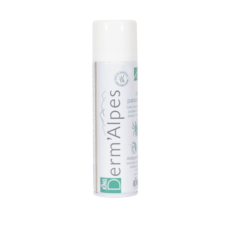 Аэрозоль King DermAlpes – противопаразитарное (инсектицидное) средство. Его активные компоненты потенцируют действие друг друга и помогают бороться с чесоточными клещами, блохами, клопами, головными, платяными и лобковыми вшами.