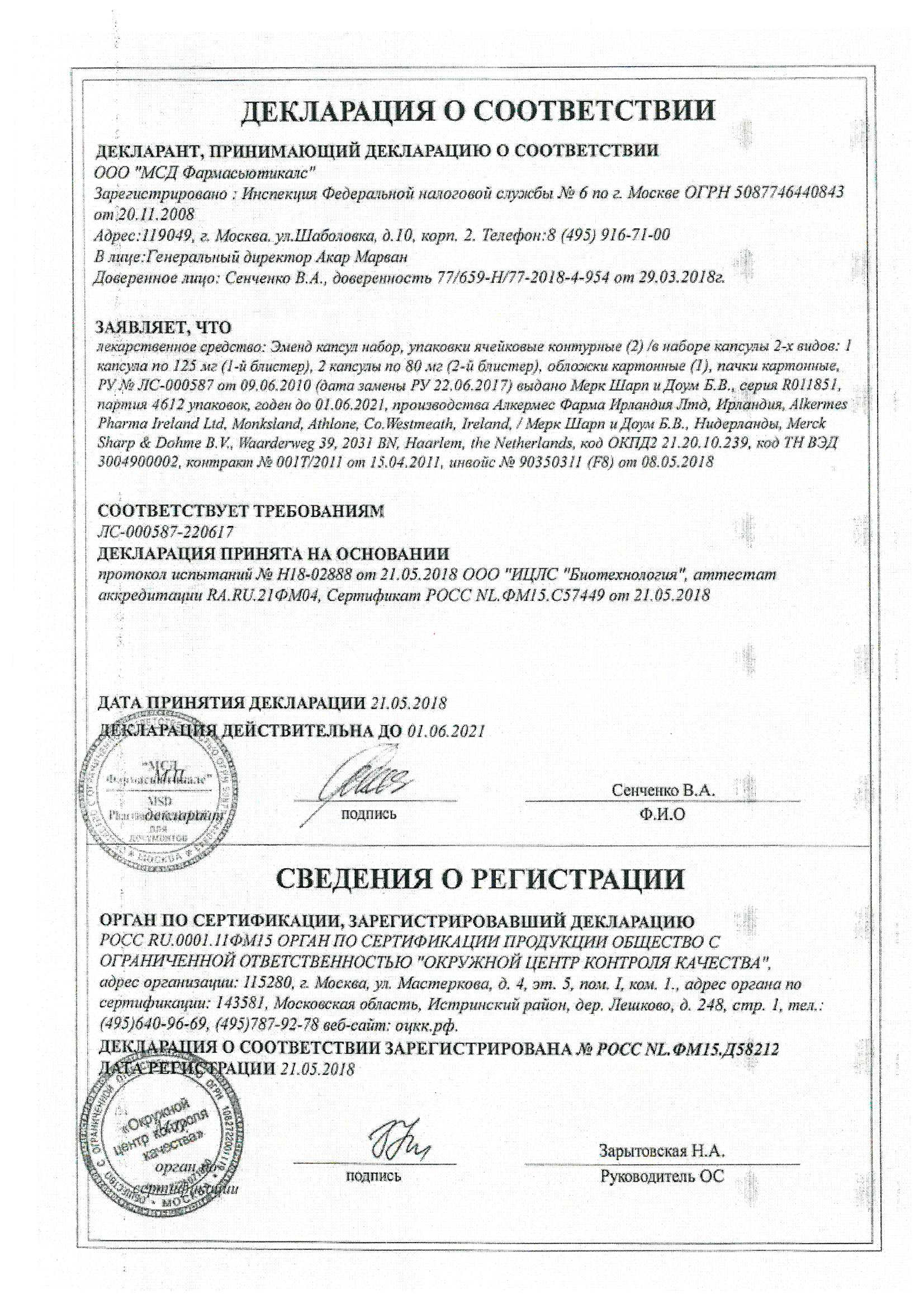 Прежде чем купить Эменд 125/80 в ближайшей аптеке, нужно обязательно проконсультироваться с врачом. Самолечение опасно для Вашего здоровья.