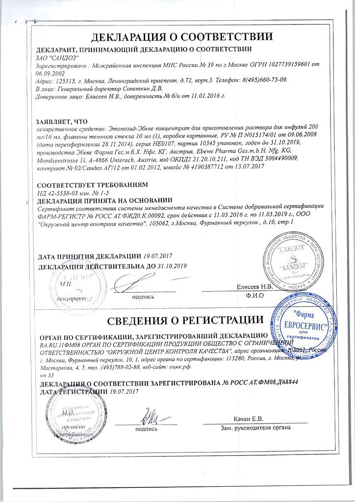 Прежде чем купить Этопозид Эбеве 200мг в ближайшей аптеке, нужно обязательно проконсультироваться с врачом. Самолечение опасно для Вашего здоровья.