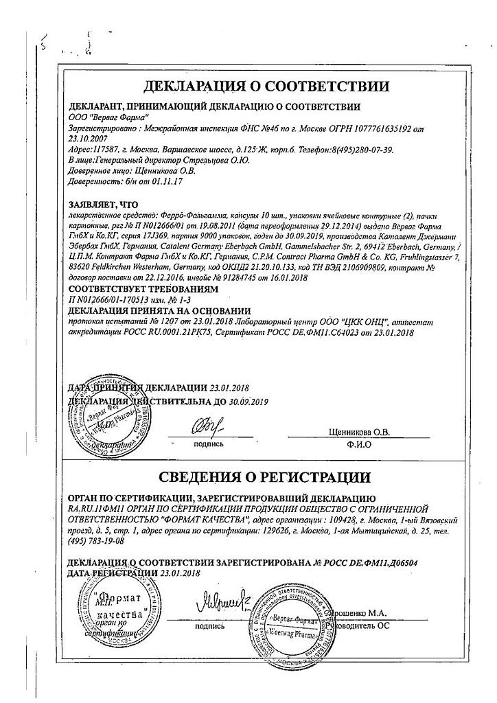 Прежде чем купить Феррофольгамма (Ферро-Фольгамма) в ближайшей аптеке, нужно обязательно проконсультироваться с врачом. Самолечение опасно для Вашего здоровья.