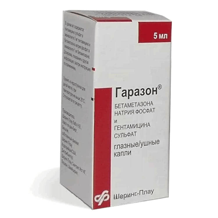 Гаразон выпускается в виде глазных и ушных капель, представленных в прозрачном растворе, упакованном во флаконы по 5 мл. Капли предназначены для местного применения, что обеспечивает удобство использования и точную доставку активных веществ к месту воспаления или инфекции.