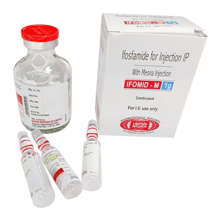 Ифосфамид – это противоопухолевый препарат из группы алкилирующих агентов. Применяется в комбинированных протоколах химиотерапии при ряде злокачественных новообразований: опухолях яичка, мягких тканях, лимфопролиферативных заболеваниях и других солидных опухолях. Месна включена для защиты мочевого пузыря от токсичных метаболитов и профилактики геморрагического цистита.