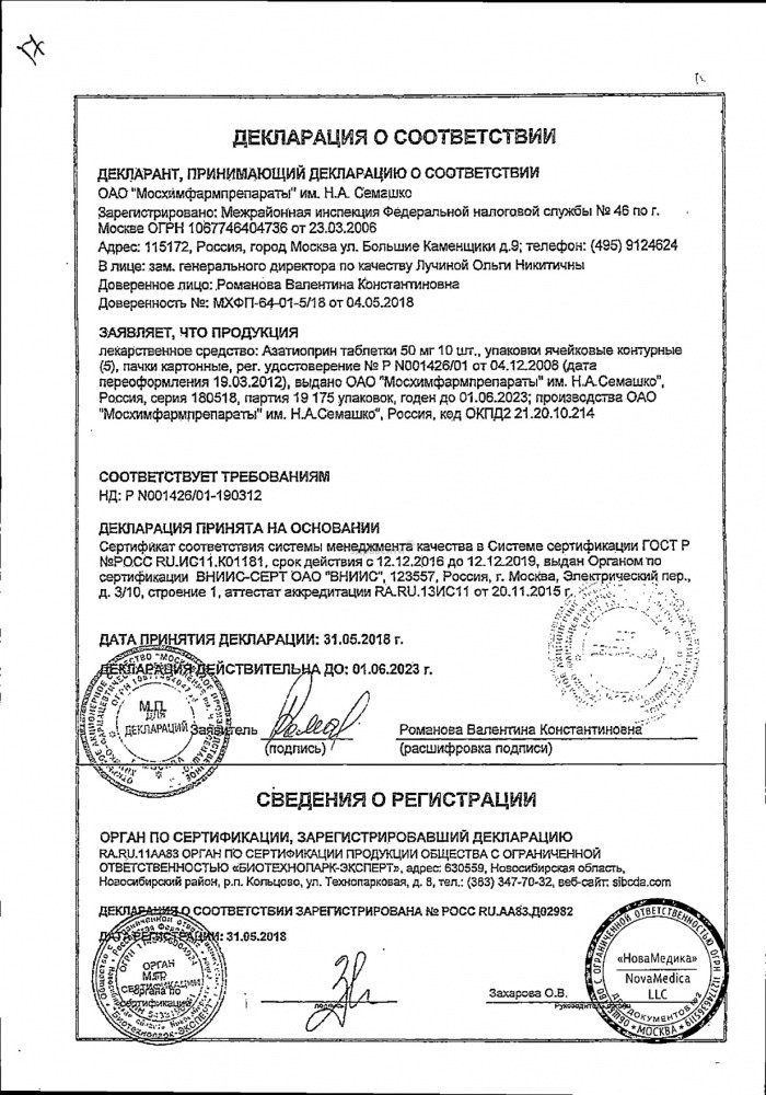 Прежде чем купить Азатиоприн в ближайшей аптеке, нужно обязательно проконсультироваться с врачом. Самолечение опасно для Вашего здоровья.