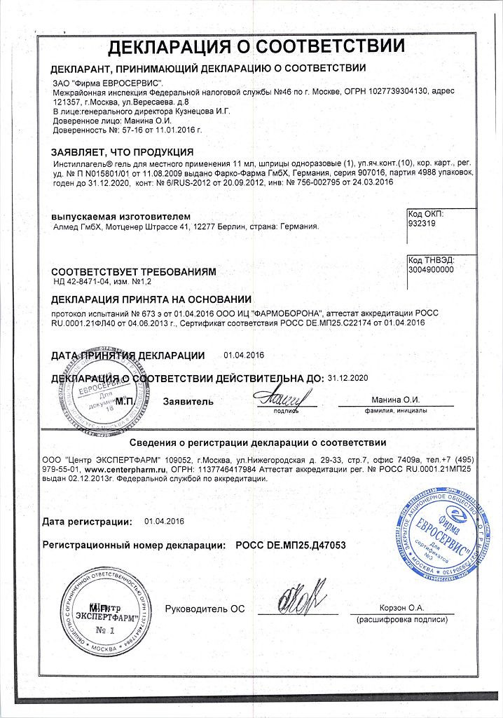 Инструкция Инстиллагель