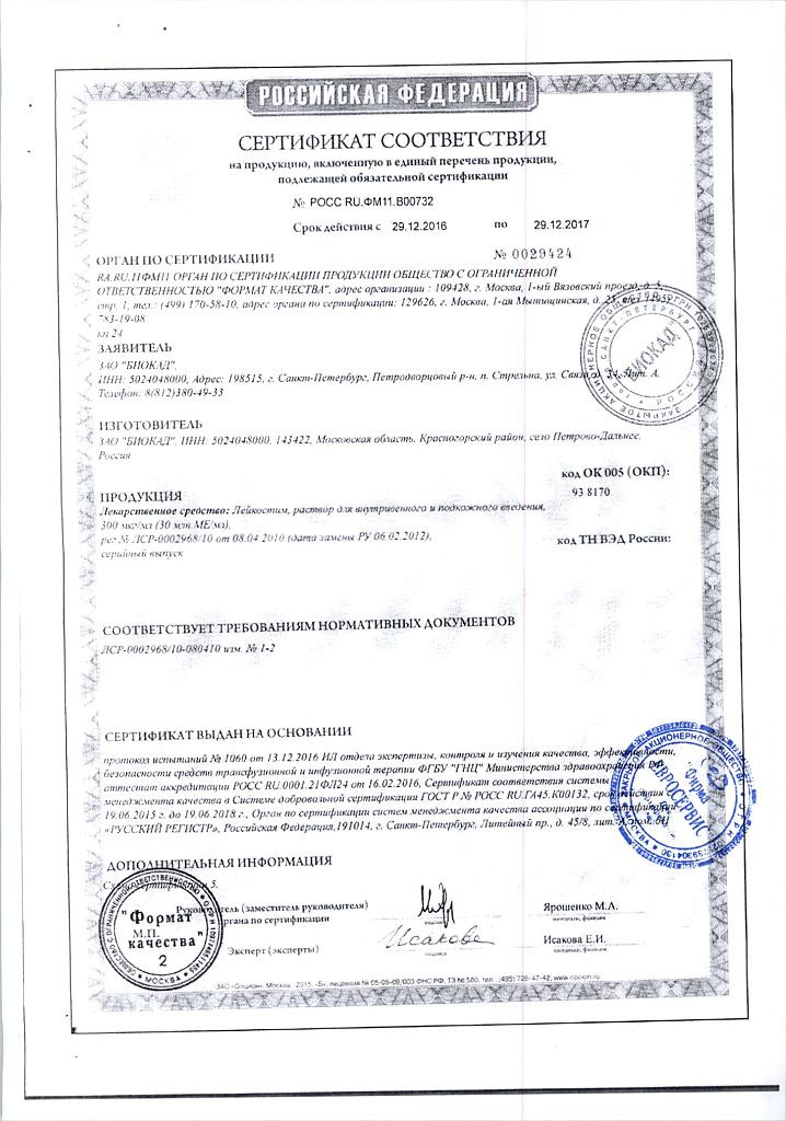 Инструкция Лейкостим