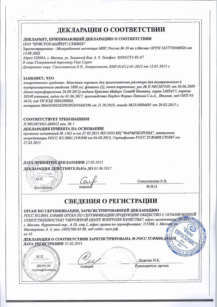 Прежде чем купить Максипим в ближайшей аптеке, нужно обязательно проконсультироваться с врачом. Самолечение опасно для Вашего здоровья.