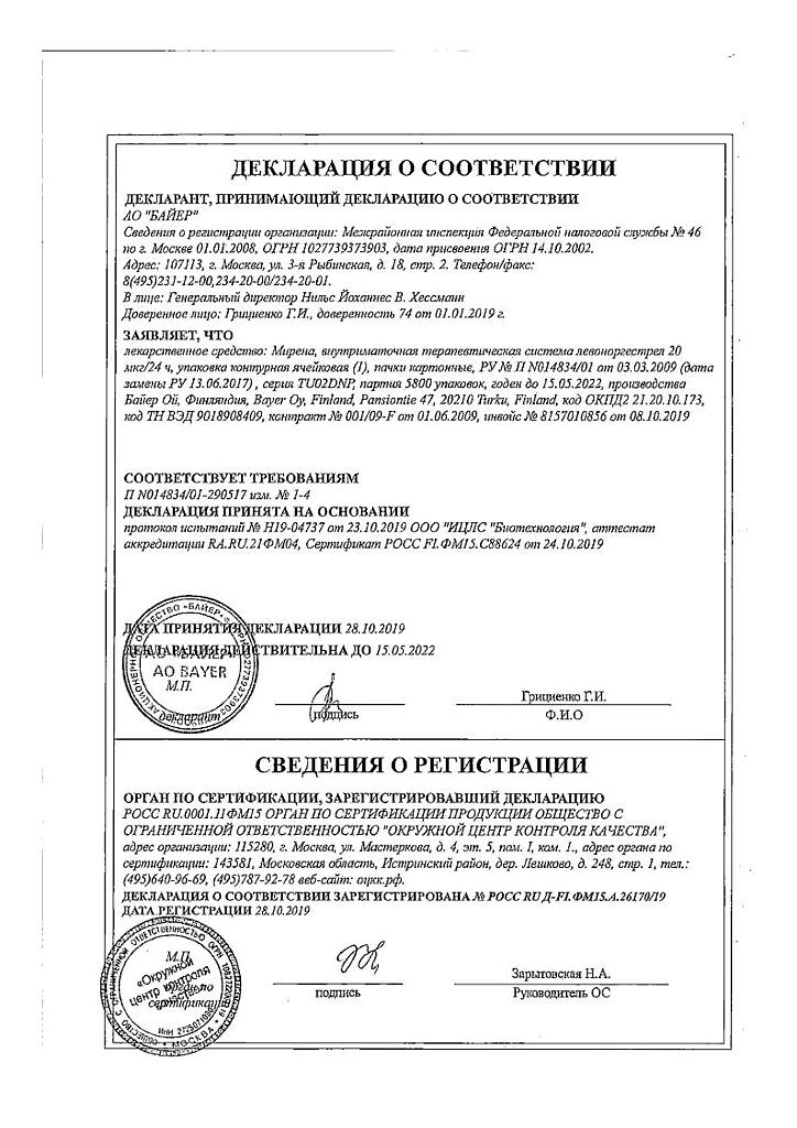 Прежде чем купить Мирена в ближайшей аптеке, нужно обязательно проконсультироваться с врачом. Самолечение опасно для Вашего здоровья.