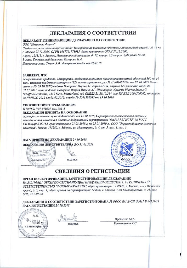 Прежде чем купить Майфортик 360мг в ближайшей аптеке, нужно обязательно проконсультироваться с врачом. Самолечение опасно для Вашего здоровья.