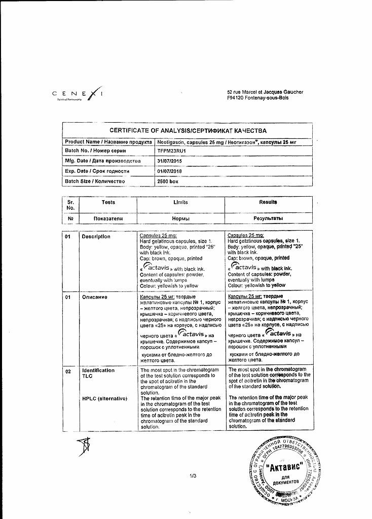 Неотигазон – препарат синтетического происхождения, который выпускается фармацевтической компанией «Actavis Group» (Исландия). Он применяется при дерматологических заболеваниях, сопровождающихся тяжелыми нарушениями ороговения, при амбулаторном и стационарном лечении.