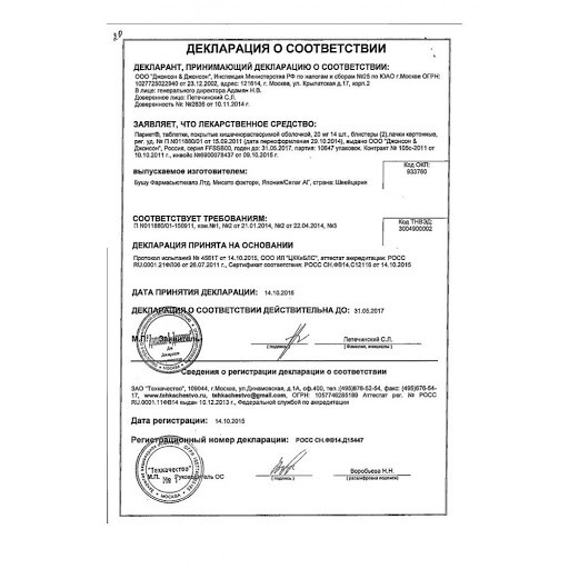 Рекомендованная доза составляет 20 мг (1 таблетка) 1 раз в сутки.