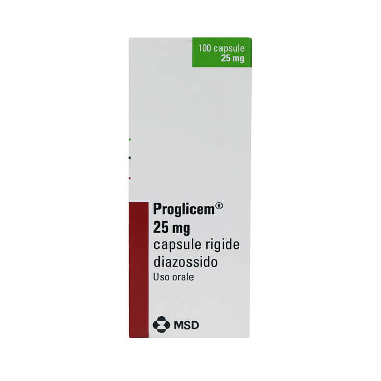 Прогликем (Диазоксид) 25 мг – это капсулы белого цвета. Внутри находится действующее вещество однородного цвета, включения недопустимы.
