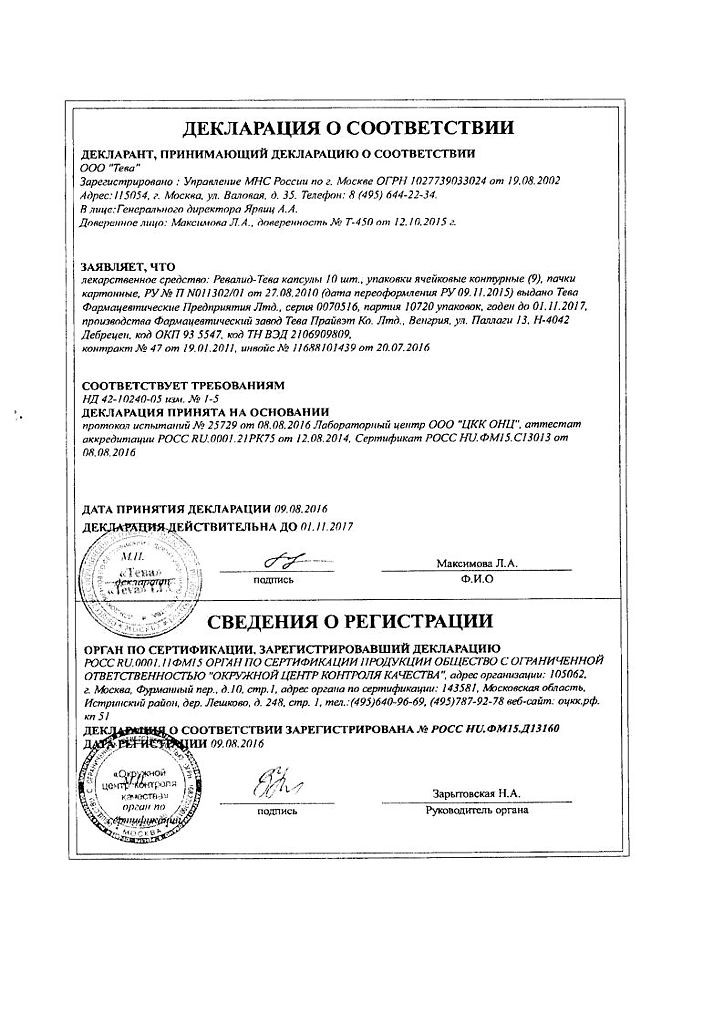 Инструкция Ревалид
