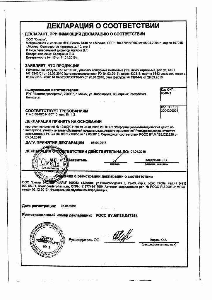 🏥 Купить Рифампицин в аптеках Москвы, Санкт-Петербурга, Екатеринбурга и др. городах России