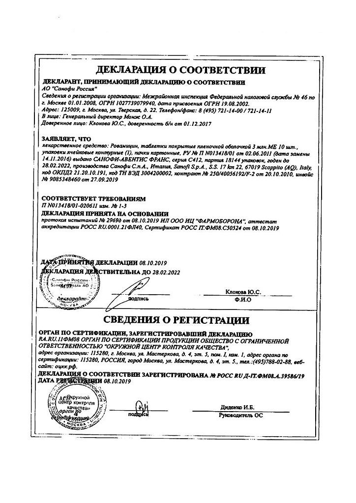 Инструкция Ровамицин
