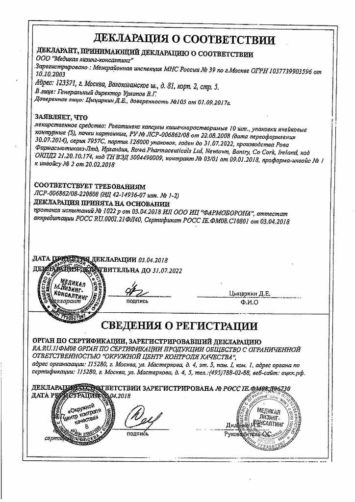 Прежде чем купить Роватинекс в ближайшей аптеке, нужно обязательно проконсультироваться с врачом. Самолечение опасно для Вашего здоровья.