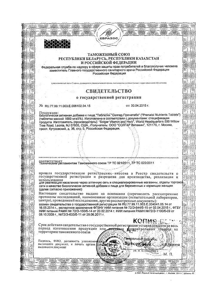 Прежде чем купить Солгар Пренатабс (для беременных и кормящих женщин) в ближайшей аптеке, нужно обязательно проконсультироваться с врачом. Самолечение опасно для Вашего здоровья.