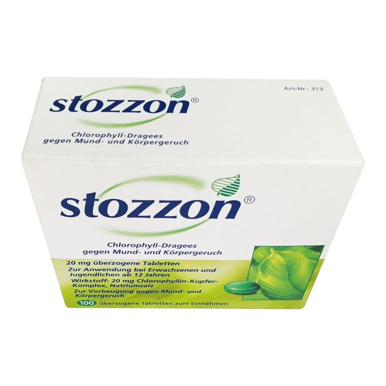 Препарат Стоззон хлорофилл (Stozzon Chlorophyll) может предотвратить неприятные запахи еще до того, как они появятся. Таблетки Stozzon хлорофилла основаны на особенно эффективном соединении хлорофиллина меди.