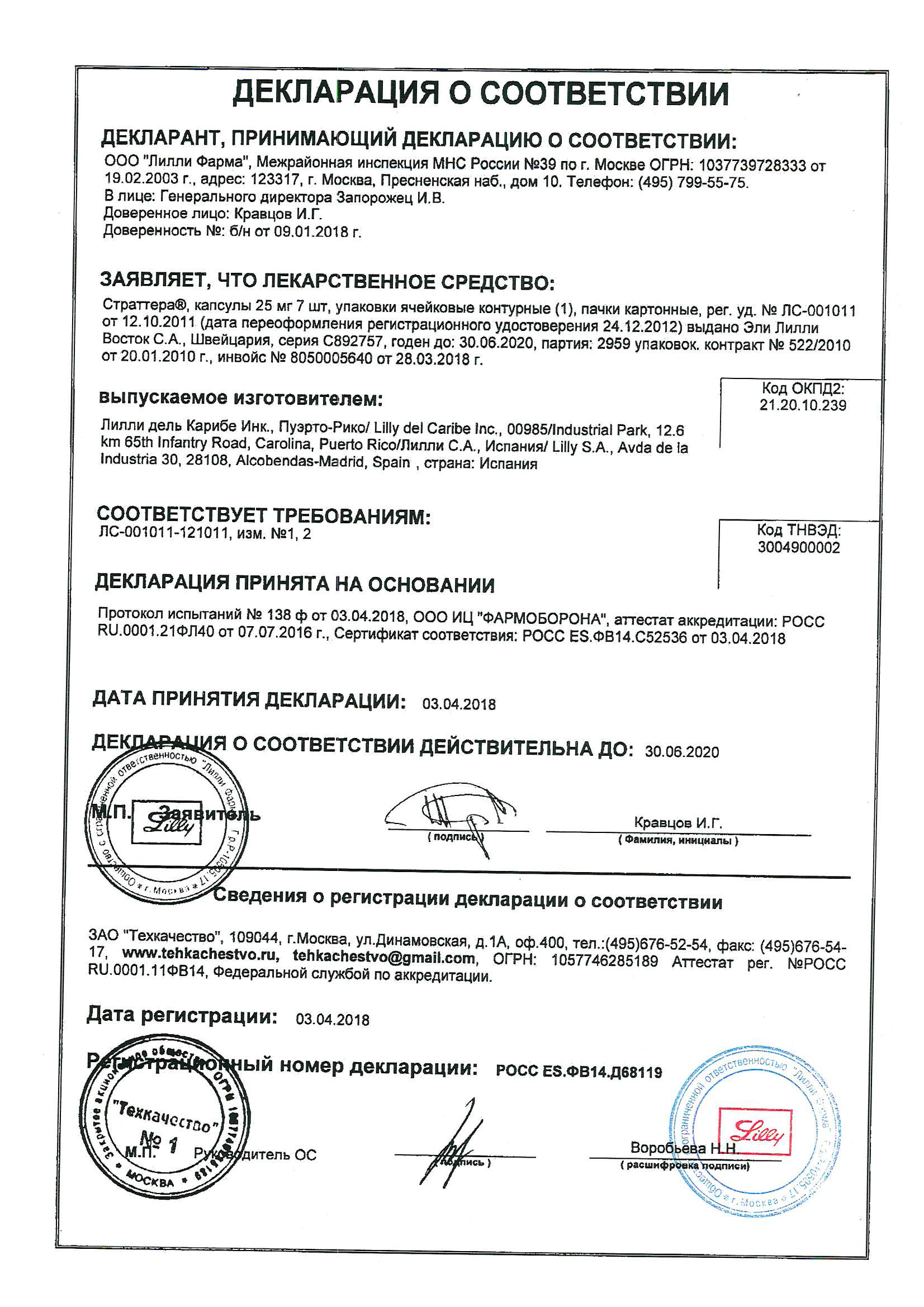 Прежде чем купить Страттера 25мг в ближайшей аптеке, нужно обязательно проконсультироваться с врачом. Самолечение опасно для Вашего здоровья.