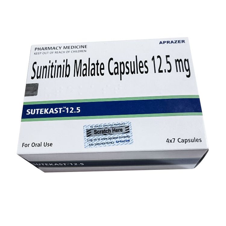 Sutekast предназначен для терапии различных типов опухолей, таких как рак почек, рак стромы желудка и некоторые рецидивирующие опухоли.