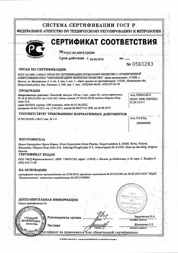 Прежде чем купить Темодал 100мг в ближайшей аптеке, нужно обязательно проконсультироваться с врачом. Самолечение опасно для Вашего здоровья.