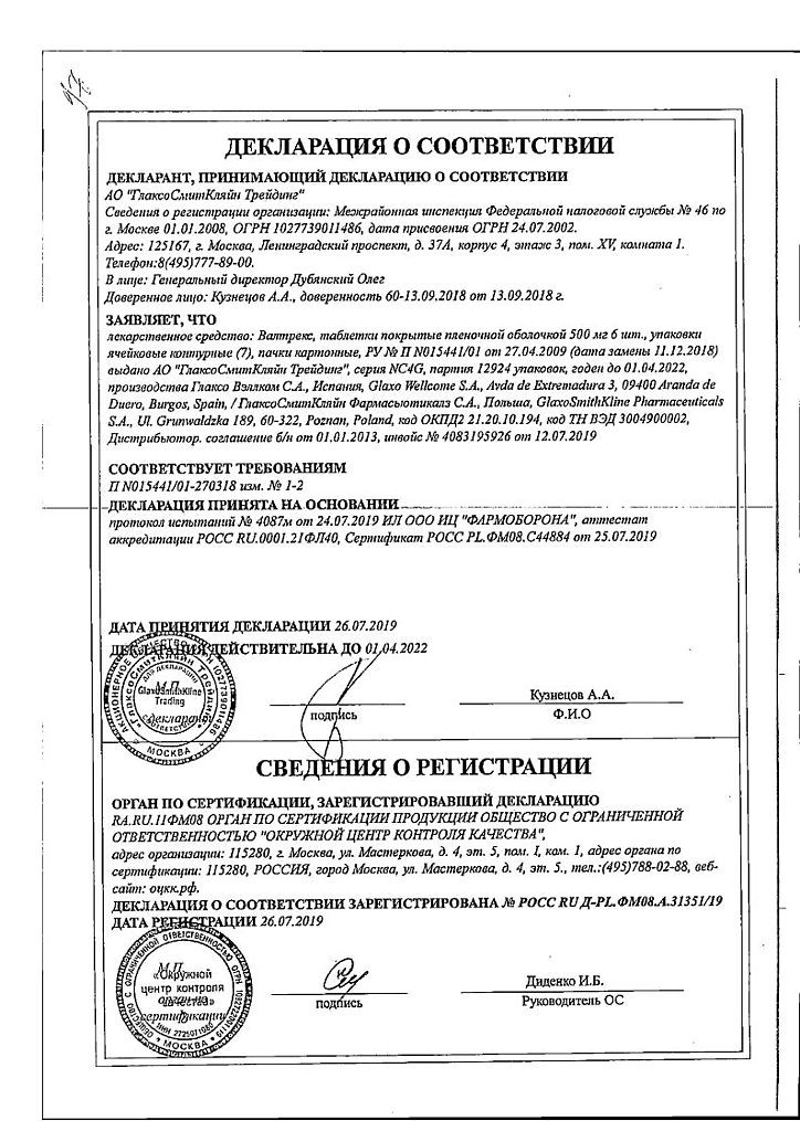 | Валтрекс (Вальтрекс) табл. 500мг N42 | Испания | 3 960 руб. | 42 таблетки по 500мг |