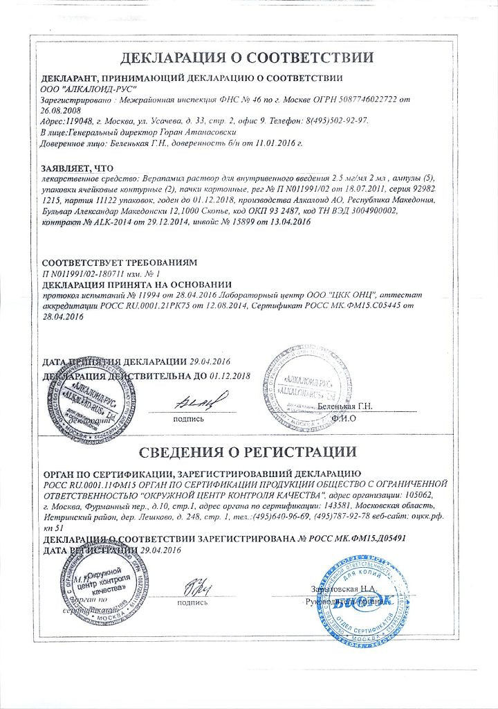 Прежде чем купить Верапамил Изоптин 2мл в ближайшей аптеке, нужно обязательно проконсультироваться с врачом. Самолечение опасно для Вашего здоровья.