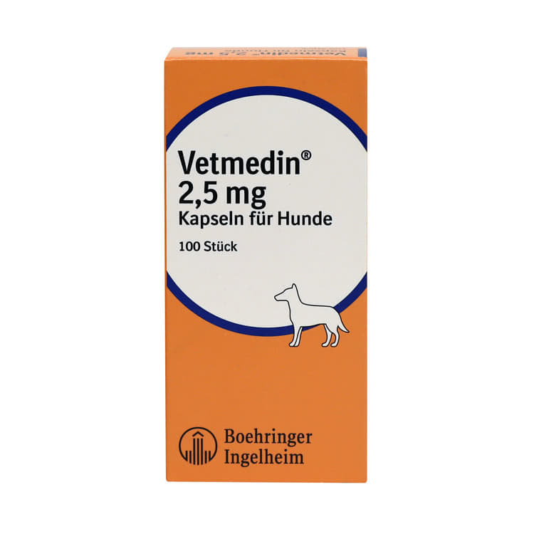 Капсулы Ветмедин 2,5 мг следует скармливать животному за 1 час до приема пищи, разделив суточную дозу на 2 приема. Классическая суточная доза – 0,5 мг Пимобендана на 1 кг массы тела. Препарат разрешено использовать для лечения беременных и кормящих сук, если польза для матери превышает риск для щенков.