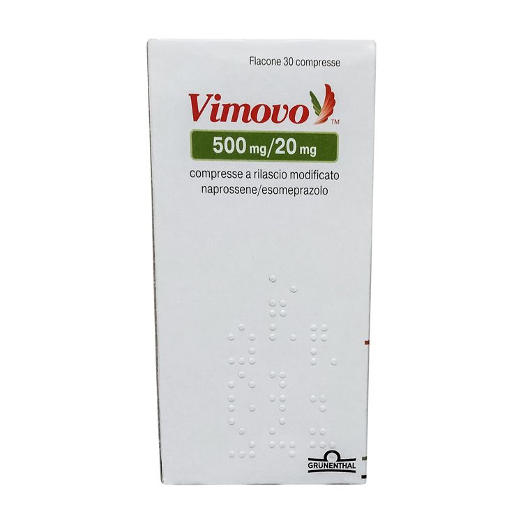 Препарат Вимово представляет собой комбинированное лекарственное средство, действующее в два этапа за счет своего состава. Верхняя оболочка таблетки растворяется в желудке открывая путь для эзомепразола, а внутренняя оболочка растворяется уже в кишечнике, освобождая напроксен. Таким образом, каждое из веществ всасывается организмом в нужный момент, что и позволяет снизить симптомы артритов, уменьшить воспаления и боль, и защитить желудок от опасного воздействия напроксена.
