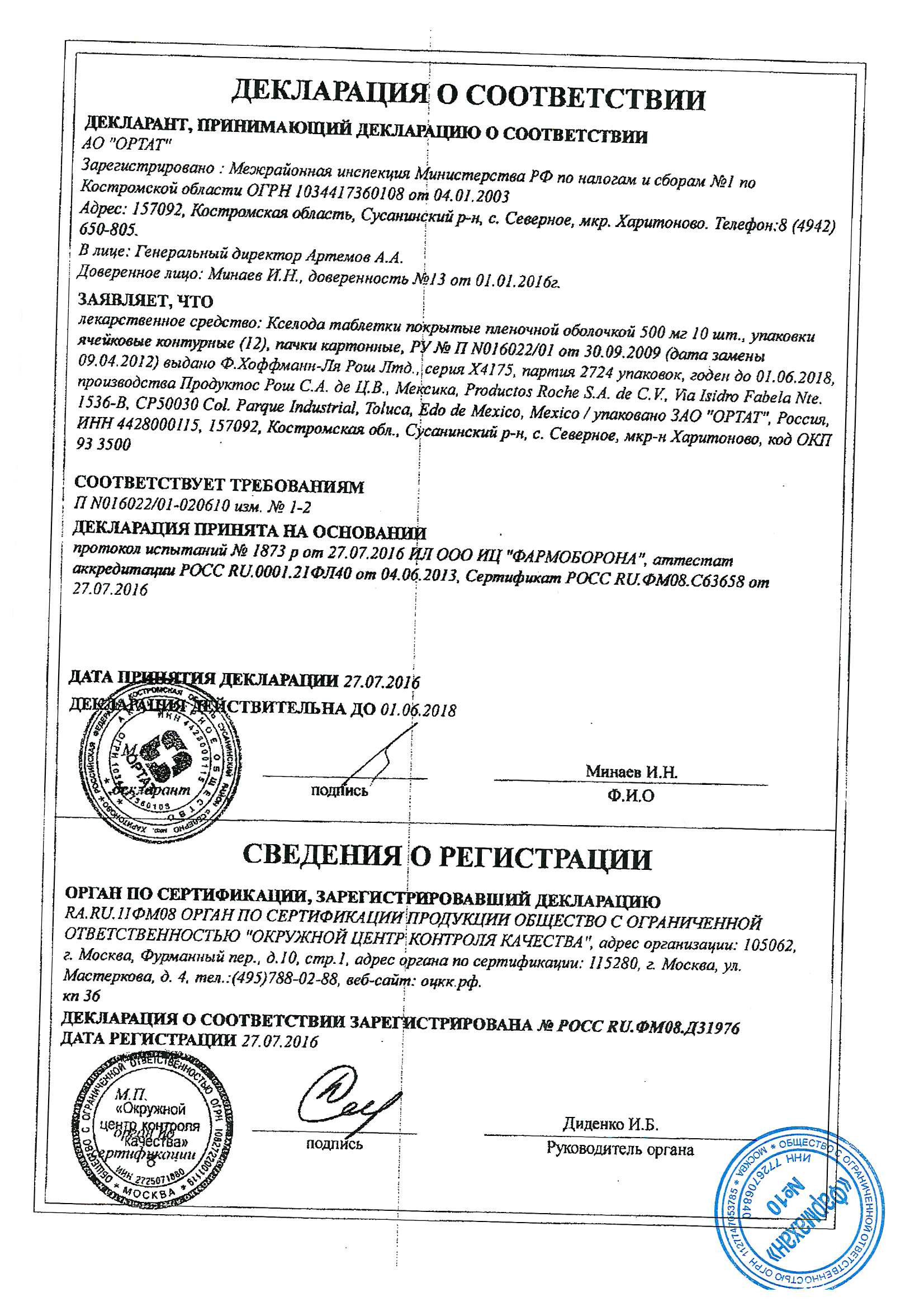 Способ применения препарата Кселода 500 мг