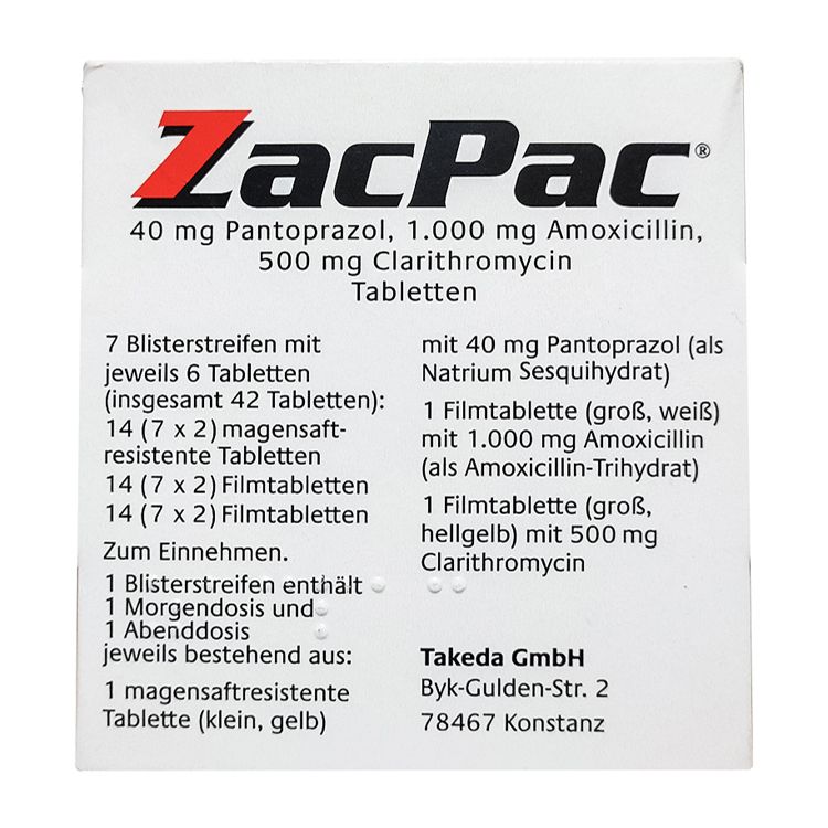 Зак Пак – это комбинированное лекарственное средство, которое используется в комбинированной терапии для эрадикации Helicobacter pylori у пациентов с язвенной болезнью с целью снижения частоты язв двенадцатиперстной кишки (язвы двенадцатиперстной кишки) и язв желудка (язвы желудка), вызванных этим патогеном.