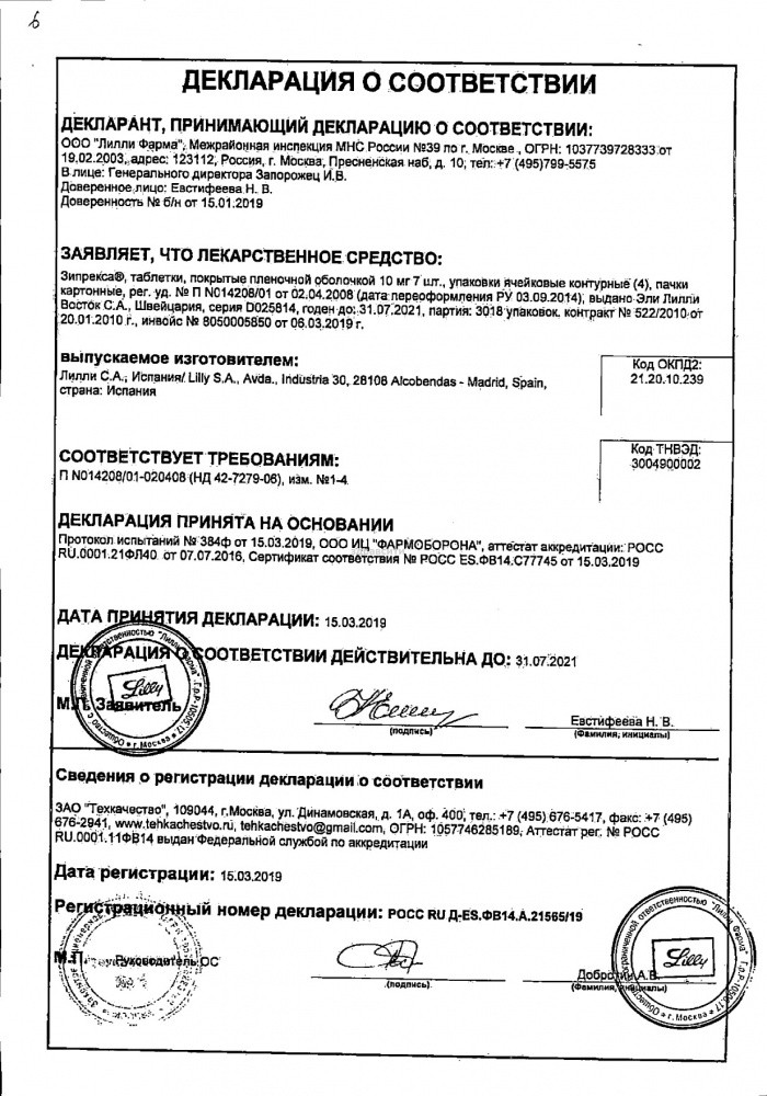Прежде чем купить Зипрекса таблетки в ближайшей аптеке, нужно обязательно проконсультироваться с врачом. Самолечение опасно для Вашего здоровья.